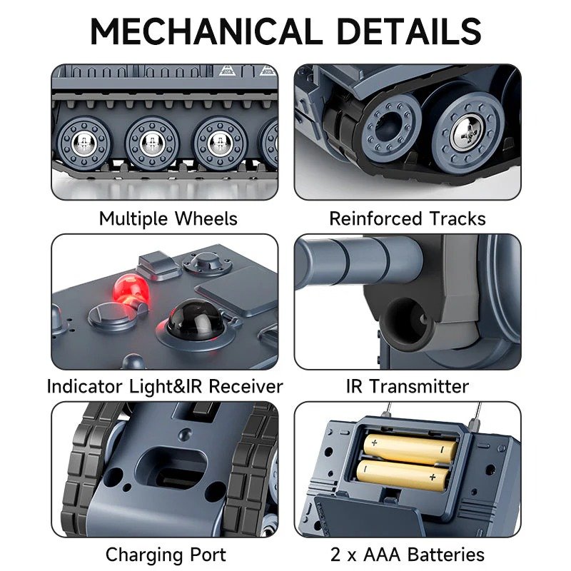 • Real Tank Simulation – Authentic track movement, LED indicator light, realistic sound, and IR receiver